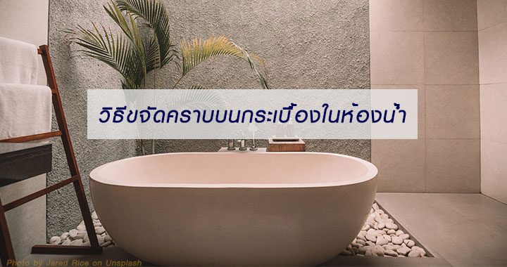 กระเบื้องภายในห้องน้ำมีคราบขาวเป็นรอยด่าง ถ้ากระเบื้องเป็นสีเข้มหรือผิวไม่เรียบก็จะยิ่งเห็นคราบสีขาวชัด
